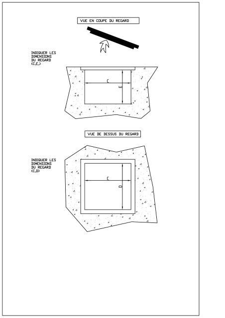 les dimensions intérieures du regard ou caniveau,